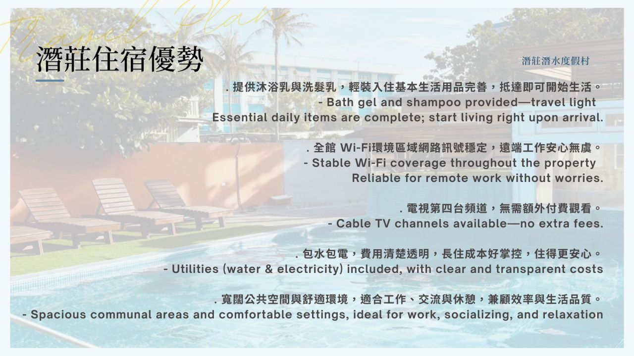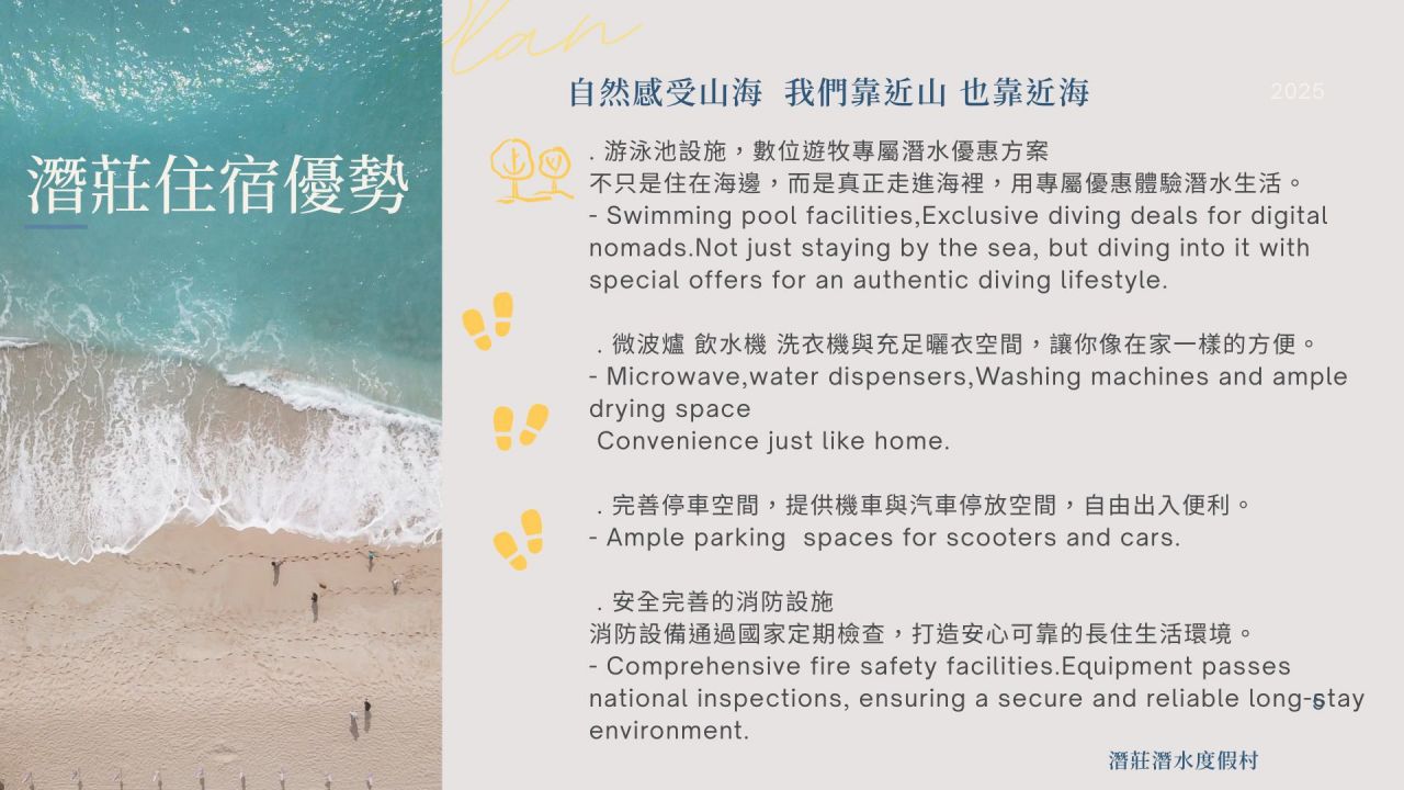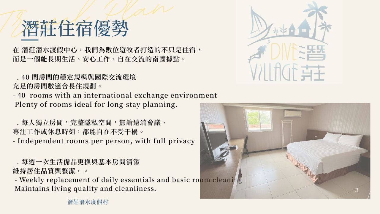 潛莊潛水渡假中心 — 為數位遊牧者打造的長住社群與潛水生活。結合穩定工作環境、完善住宿與海洋體驗,讓你在深藍之中持續連線、安心創作。了解方案與包月優惠,請加入官方LINE或私訊臉書粉專聯繫我們。